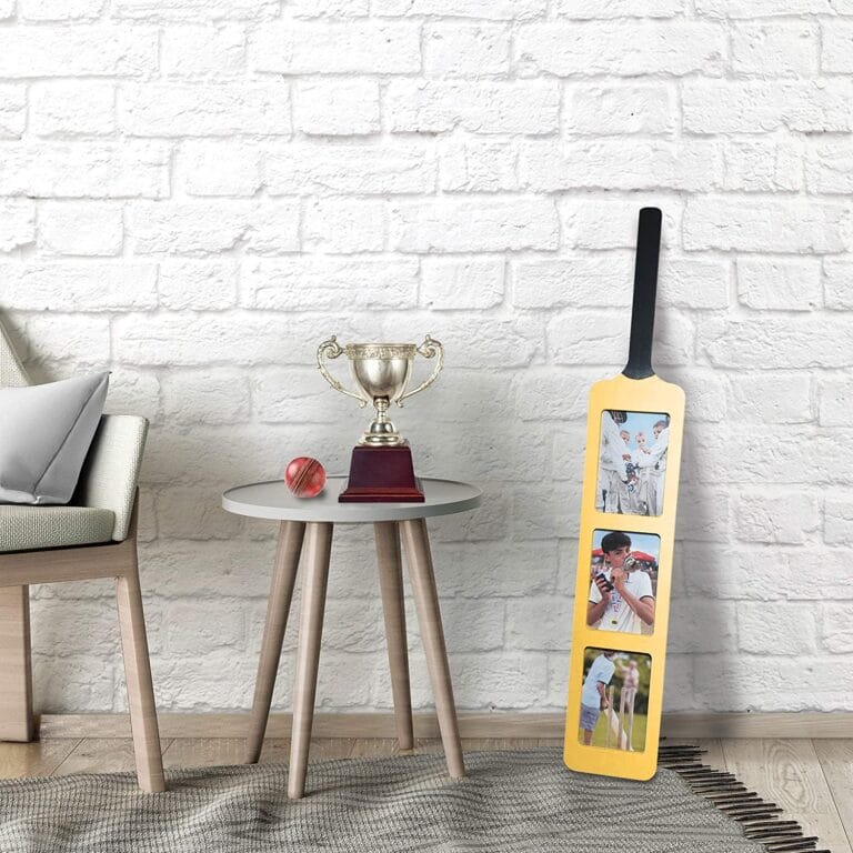 Today I’ll be writing about the Oliphant Cricket Bat Picture Frame. A wooden picture frame in the shape of a traditional cricket bat. The bat holds three 6×4″ (152x102mm) sized photographs. You can display them on a wall, both horizontally and vertically, or prop the bat in the corner of a room.
