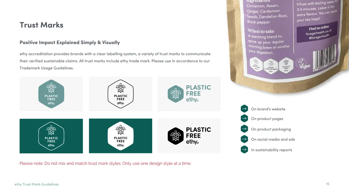 Sustainability commitment spans an expansive spectrum of businesses, from zero-waste stores and vegan cafes to cosmetics companies, food and beverage suppliers, and fashion brands. Over 100 brands have enthusiastically participated in Ethy’s audit and accreditation process. They display Ethy trust mark logos on their websites, marketing materials, and packaging – assuring consumers of their commitment to environmental responsibility.