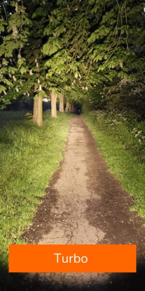 - Turbo: 1600~700 Lumens, 60s+1.30 hour runtime, 352M distance, 30976 Candelas (cd).