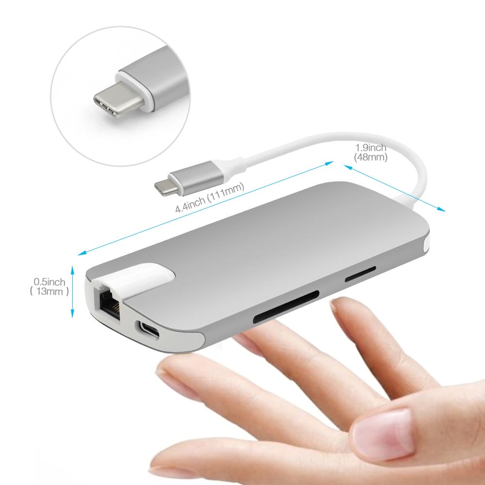 The Ansbell 8 in 1 USB-C Adapter is an all in one device for your 12″ MacBook, MacBook Pro 13″ and MacBook Pro 15″, Google Pixel Chromebook, ASUS Zenbook 3 (UX390), Dell XPS 13, 2016 HP Spectre, and Surface 4 Pro devices.