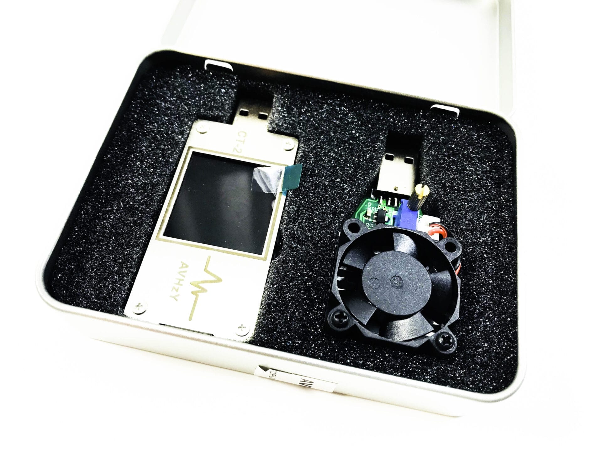 The AVHzY CT-2 USB Power Meter Load Tester comes packaged in a foam lined metal tin. The tin measures 11.5cm x 8.5cm x 2.3cm and weighs 140G.
