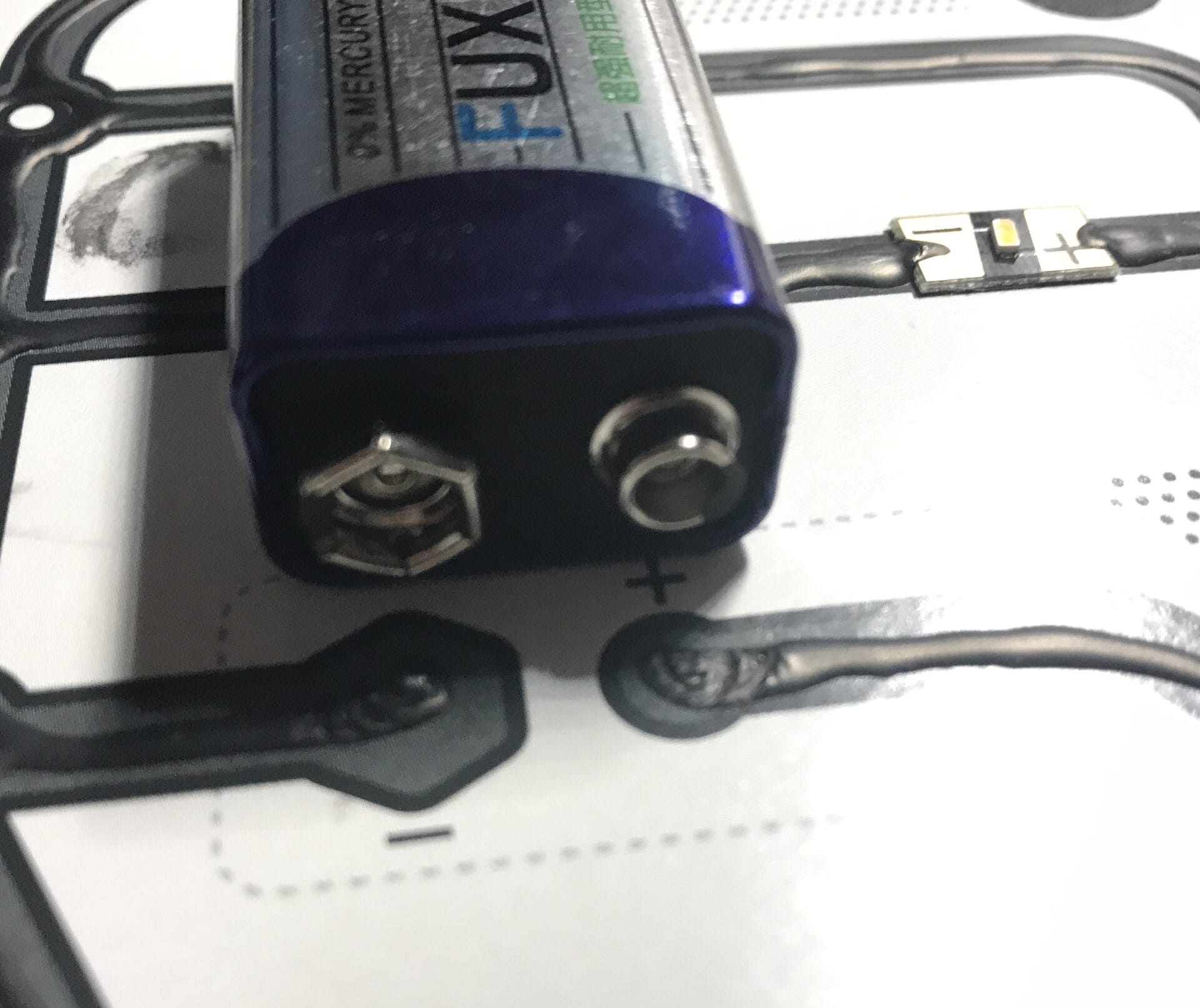 Now repeat for all the other LED chips, you’ll notice a section missing on the circuit, this is done deliberately, you need to blob a small amount on the tab, this teaches you open/closed circuits. The instruction manual printed on the box says the paint needs around 20 minutes to fully and become conductive, but I found I needed around 2 hours!