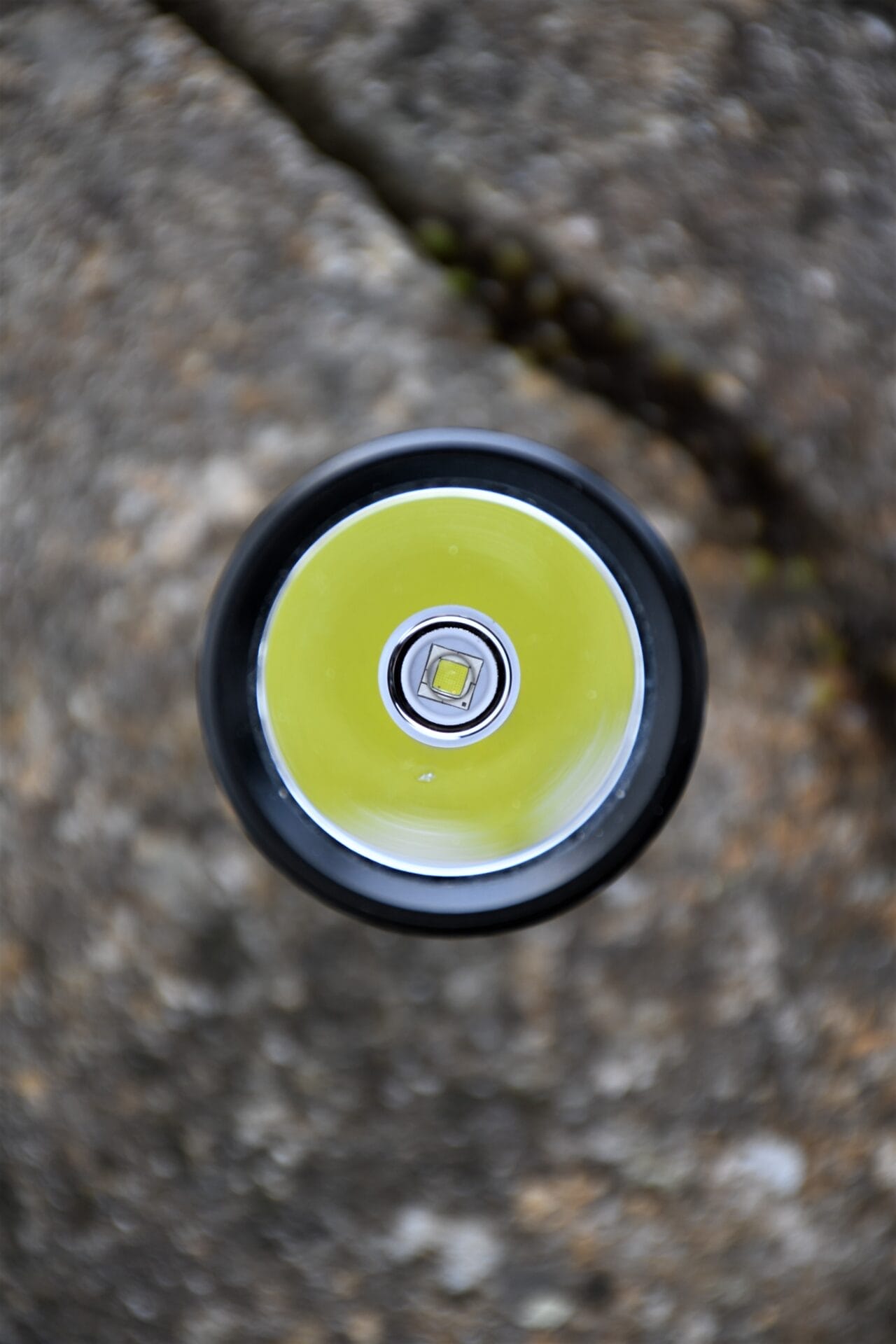 The body is quite thick, with deep trenches cut out. This allows heat to dissipate, as well as moisture to run off, preventing the WT01 from becoming slippery. This means that even in wet conditions, the WT01 Apollo can be used with ease. The flashlight can be broken down into two parts: the head and the body. The tail cap isn’t removable, however, this is what connects to the wireless charger.