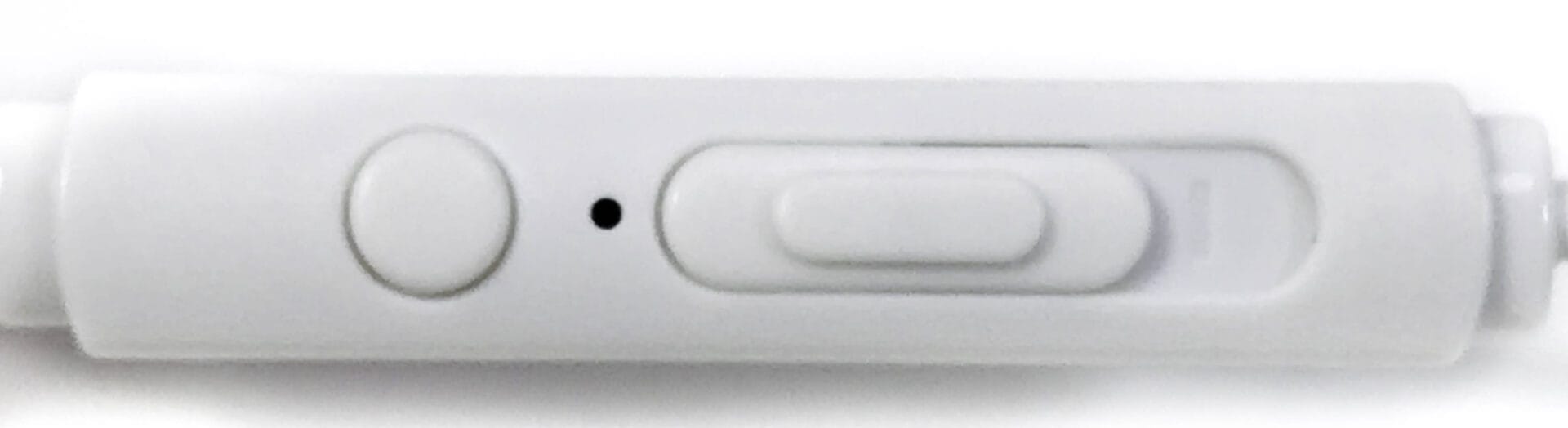 There’re two controls, the first is a slider switch which controls the volume of your music, but can’t change the volume level on your device, it simply slides from maximum to mute using the volume set on your device. When I first started testing them out the switch was in the mute position and I thought they’re faulty! It took me a moment to realise this and once I slid the switch upward my music started.