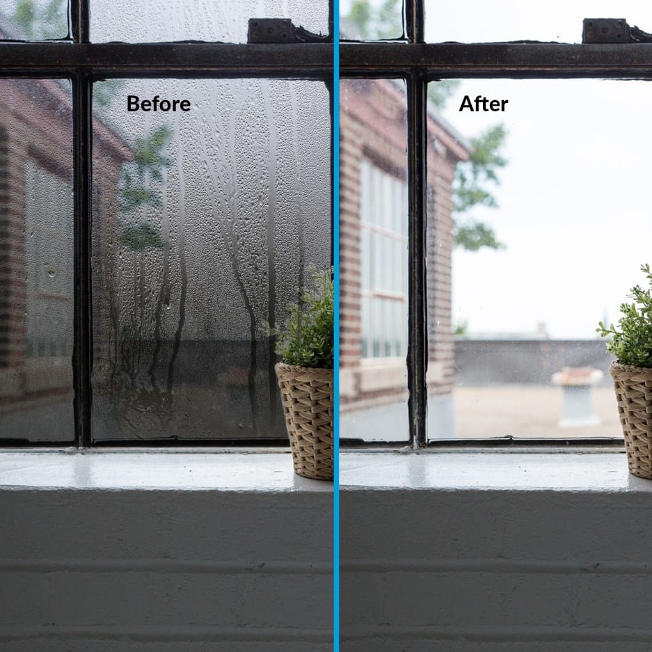 My property is a standard 2 bed house, with recent double-glazed windows, which are very efficient for keeping the cold winter weather out. The problem is they’re too good! That may seem odd, but older windows ‘leak’ and therefore produce a stream of fresh air, which combats condensation.