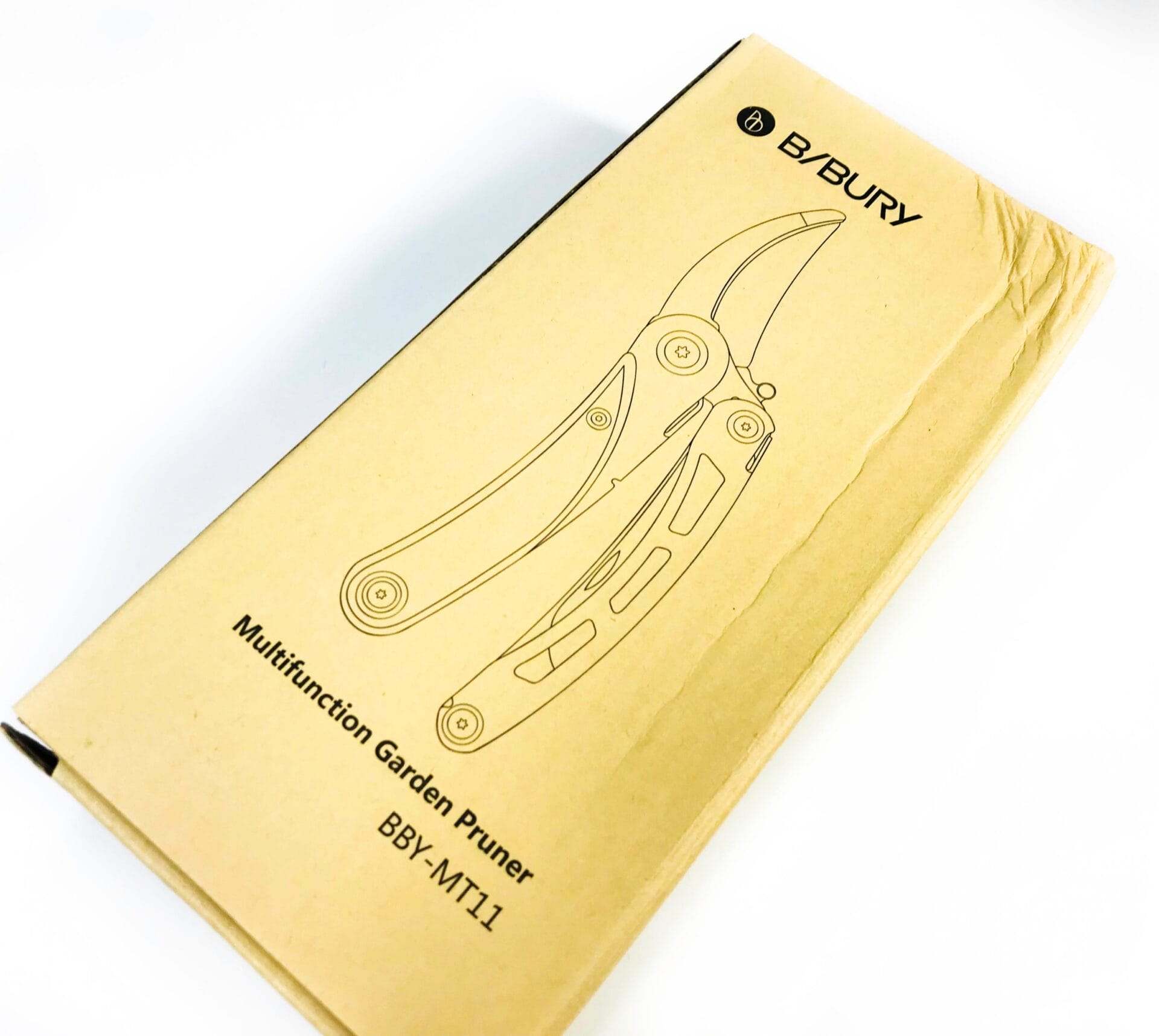 The BIBURY Multifunction Garden Pruner comes packaged in a light Brown cardboard box which has product images and specifications printed on it. The box measures 16.5cm x 8.0cm x 4.0cm and weighs 310G.