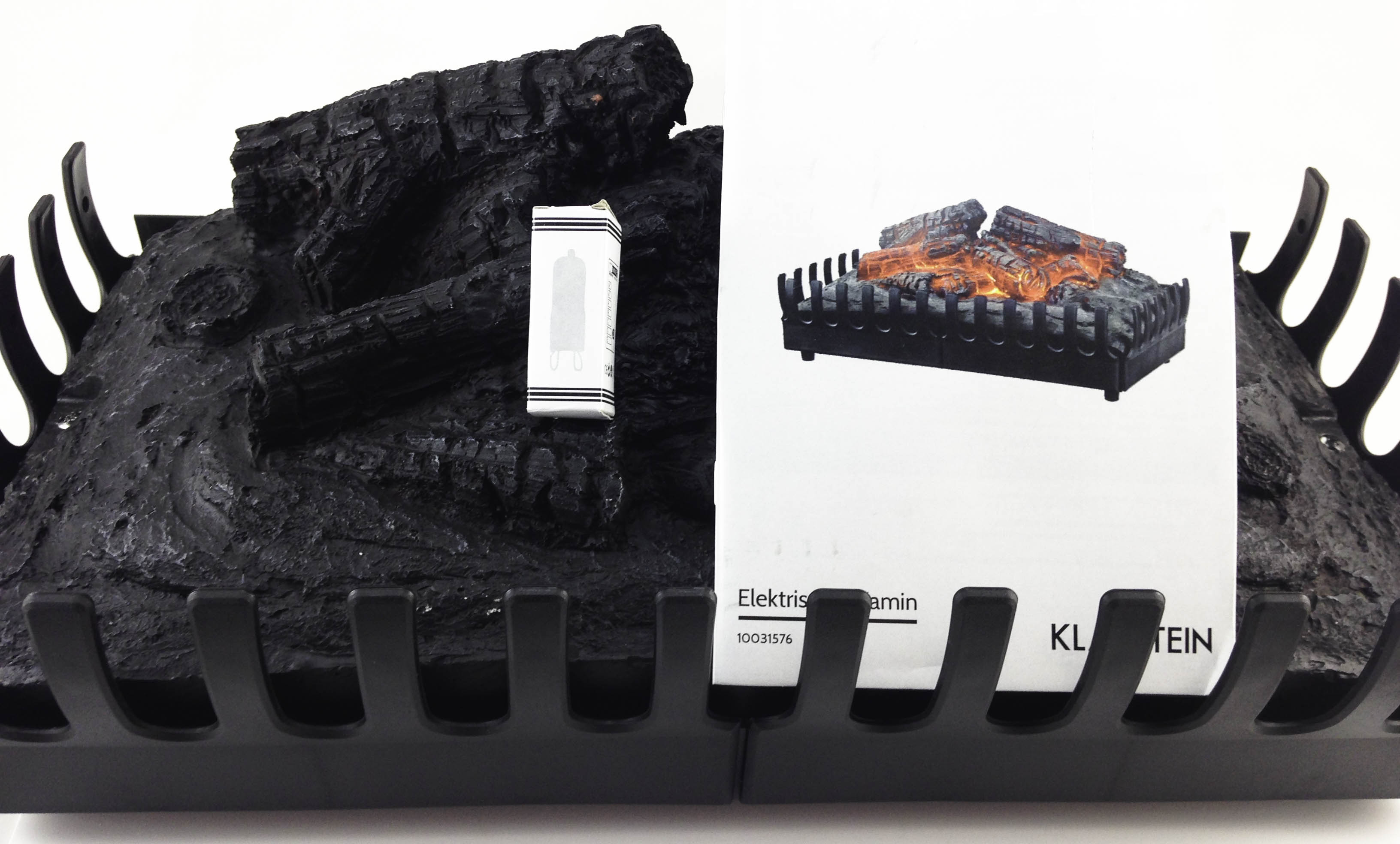 Upon opening the Klarstein Kamini Fireplace box you will find the following items. 1x Fireplace, 1x G9 Halogen Lamp, 1x Multi-Lingual User Manual.
