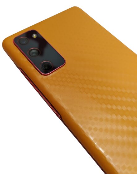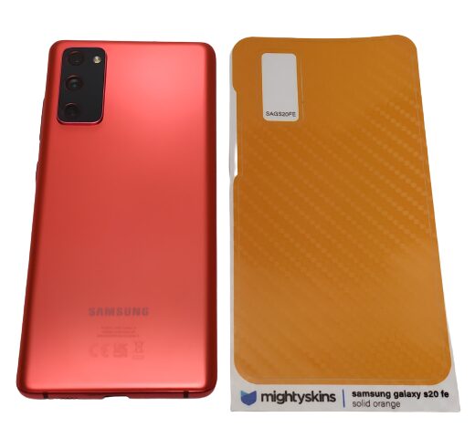 Thankfully I had ordered a skin for my Samsung Galaxy S20 FE. I ordered a solid Orange carbon fibre finish skin. Why Orange I hear you say? Because Orange is the best colour, although nothing can rhyme with it, which makes my above statement harder as I can’t be clever and rhyme my reason. Oh well!