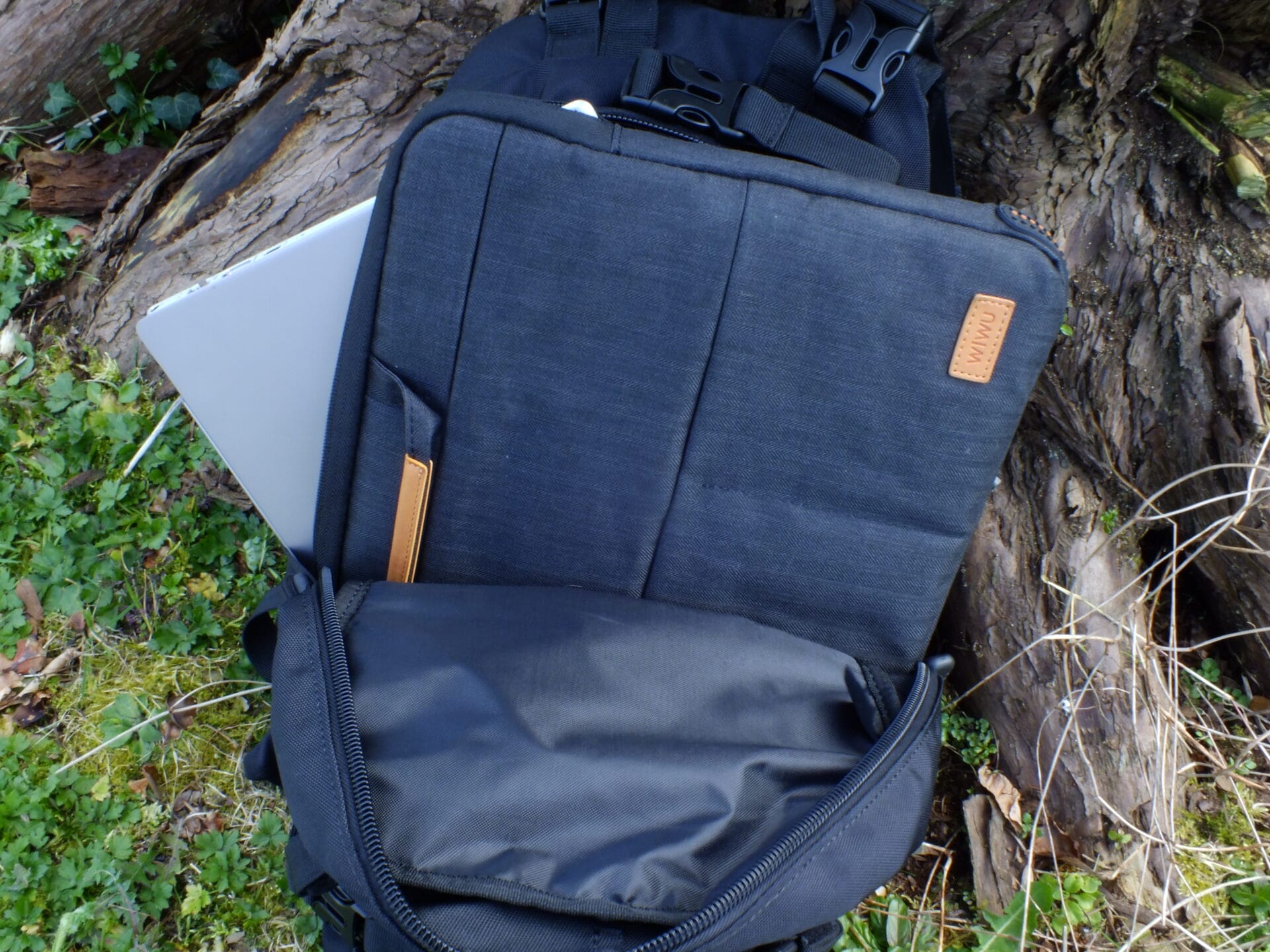 This is the section that is just behind the one closest to your back when wearing the BP20. Now, it is designed to hold a 13” laptop, however, it can comfortably hold my 14” HP laptop, so don’t let that put you off buying this backpack! Even when I store my laptop in this section, there is still plenty of space around the sides and the front for extra things, such as the charger or a wireless mouse.
