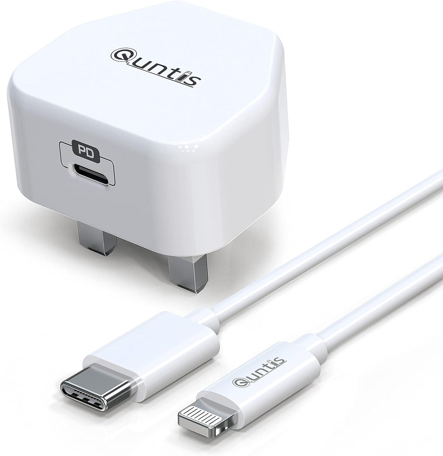 Quntis sent me the single UK plug and USB-C/Lightning combo.
