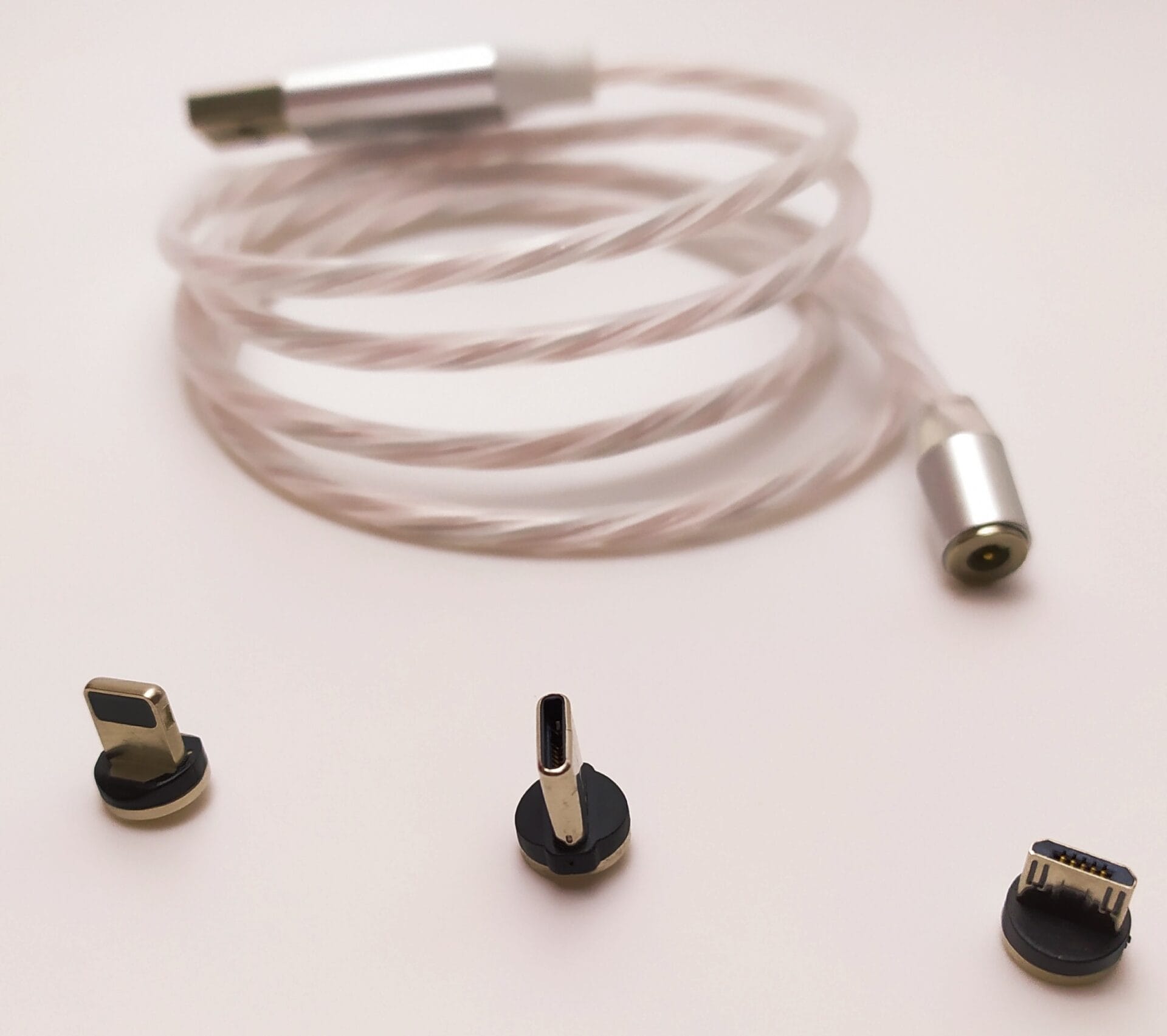 With the cable you get three magnetic end pieces which includes a Lightning, Micro USB, and a USB-C connector. So, one cable really can serve all your charging needs.