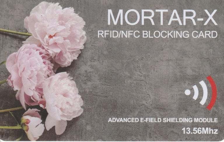 The MORTAR-X RFID NFC Blocking Card is a credit card sized wireless signal blocker that prevents you becoming a victim of contactless skimming. A single card will protect a whole wallet of contactless cards from organised scammers.